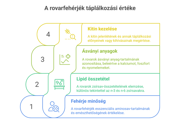 Az új fehérjeforrások vizsgálatakor fontos meghatározni azok minőségét, különösen a fehérje és az aminosav összetételét. A fehérje minősége attól függ, hogy mennyire képes kielégíteni az alapvető aminosav-szükségletet, és milyen mértékben emészthető. A rovarfehérjék, például a fekete katonalégy lárva vagy a lisztkukac, fenntarthatóbb alternatívát jelenthetnek a hagyományos állati eredetű fehérjeforrásokhoz képest. A fekete katonalégy lárva átlagosan 40-44% nyersfehérjét tartalmaz, míg a lisztkukacok esetében ez az érték 38-42%. Ezek a rovarok esszenciális aminosavakat is biztosítanak, amelyek hasonlóak a hagyományos húsfehérjékhez, mint például a csirke- vagy a marhahús.